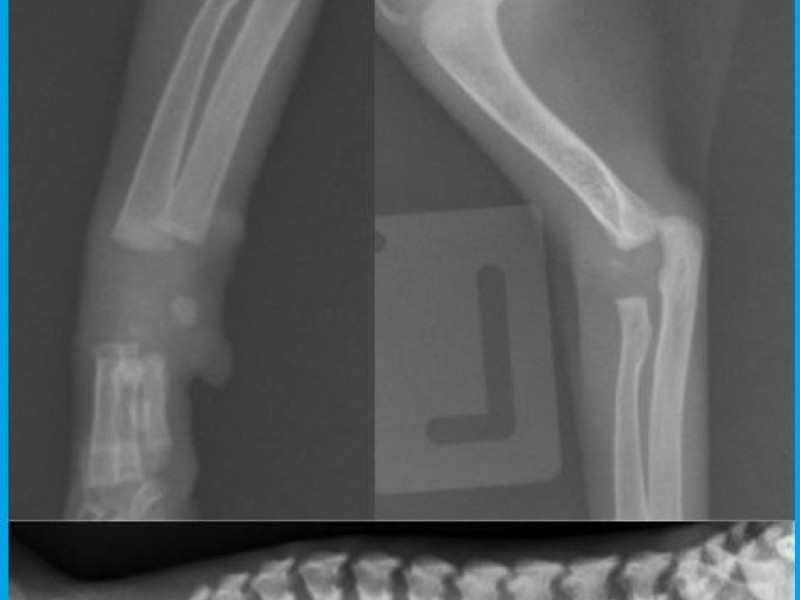 Une radiographie d'un châton de la portée et du même âge a été prise en comparaison. Cf la deuxième radio.